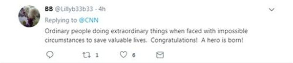 “BB”:“为了挽救宝贵的生命,普通人在不可能的情况下完成了非凡的任务。祝贺!一个英雄诞生了!”