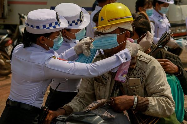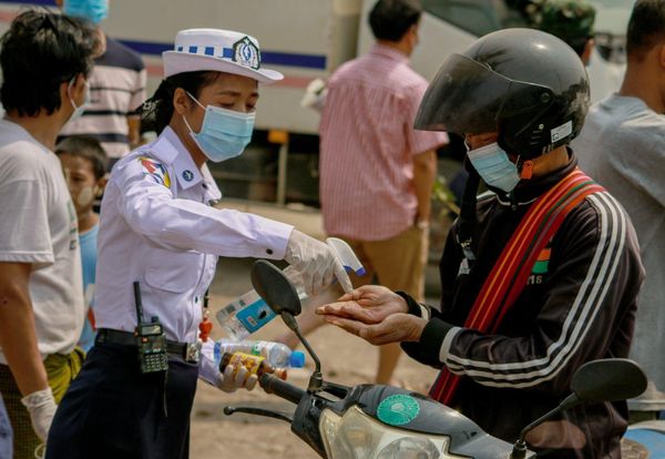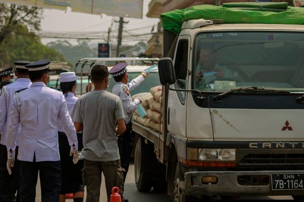在今天早晨,缅甸掸邦东枝市的交警与两个本地慈善机构,协力分发了1000多个口罩,主要对象是过路的车辆司机和摩托车。