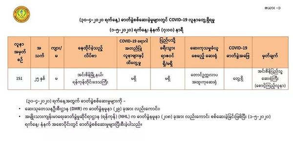 至此,缅甸国内新冠病毒确诊人数增加至151人。