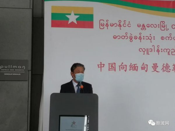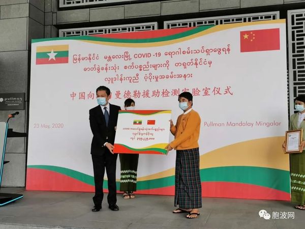2020年5月23日上午10:00时,于曼德勒PULLMAN 酒店,隆重举行“中国向缅甸曼德勒援助检测实验室仪式”。中国驻曼德勒总领事馆陈辰总领事、曼德勒省代省长吴萨尼昂、曼德勒市长耶伦博士、省政府领导代表、云南省医疗代表团、曼德勒云南同乡会理事长蒋恩悌、新星光公司董事长杨贵荣、曼德勒福建同乡会理事长林文章、曼德勒广东同乡会理事长李勤、《胞波网》董事长李祖清博士、缅甸国家电视台MRTV以及各媒体记者百余人出席了仪式。代省长与总领事一一致辞。