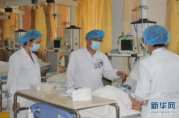 5月19日,谢健(中)在云南省中医医院滇池院区重症监护室查房。(新华社记者姚兵 摄)