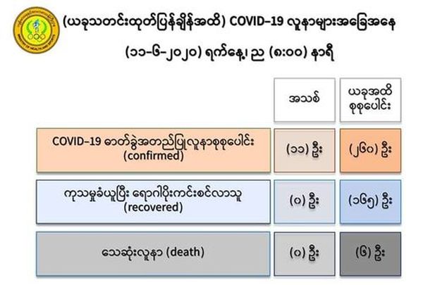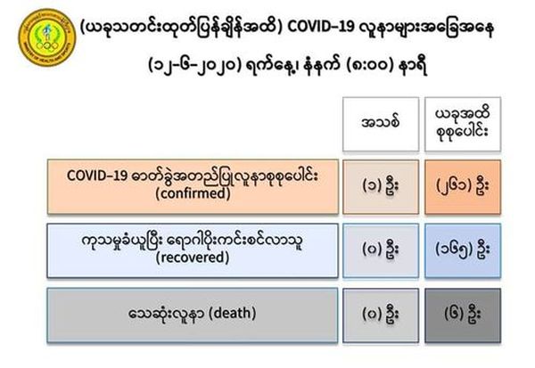 至此,缅甸国内新冠病毒确诊人数增加到261人。
