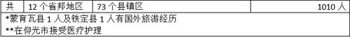 总计1010名确诊者来自12个省邦地区、73个县镇区。