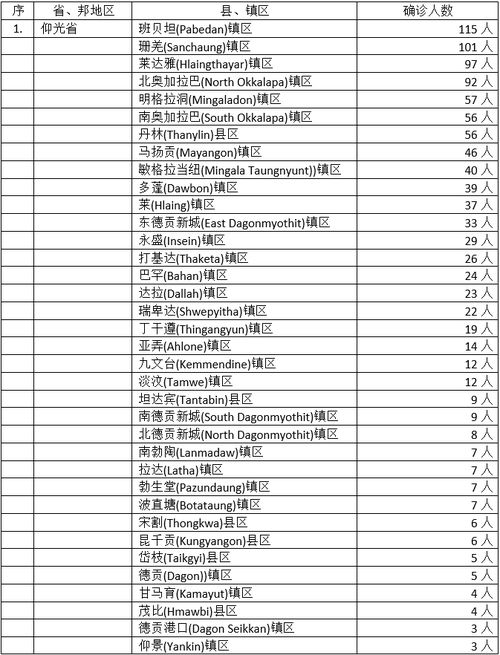 1294名确诊者中,仰光省38个县镇区感染1042人,占总人数的81%,确诊人数比例高而且还是压倒性地居于全缅之冠。其中确诊人数最多的是班贝坦镇区(115人),是著名的商业闹市区,位居第二的珊羌地区(确诊人数101人)也是著名的闹市地区,现在也受到了疫情强烈的冲击,由此可见这一次疫情的严重性。