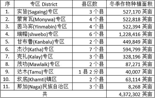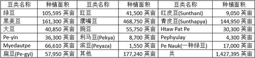 实皆省内的10个专区及那加民族自治区内计划栽种的各种豆类如下表:
