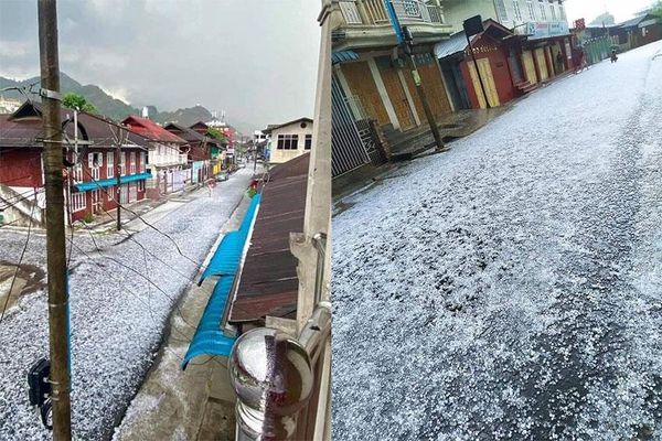 5月5日上午7时45分,曼德勒省抹谷市东部迎来一场大雨,大量冰雹伴随着雨水落下。据当地居民称,下冰雹时间持续了约20分钟。