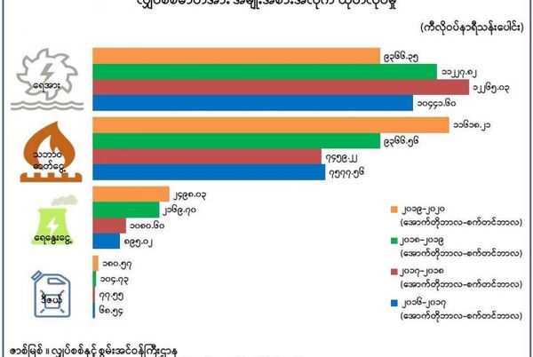 根据电力和能源部,中央统计局发表的数据显示,缅甸每年的发电量中,根据不同类型的发电量比例而言,水力发电在过去一直是占比例最高,但在2019-2020财年,天然气发电量却占了最大比例,达到了116.821亿千瓦时,而水力发电则只有93.6635亿千瓦时。