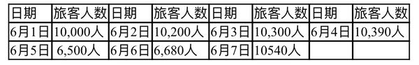 目前该樱花渡轮在6月份的头一星期内每天载运的旅客人数如下表: