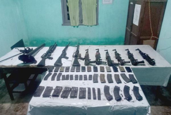 6月23日晚间,安全部队得到消息后到丹老市玛茵涅村附近的一个橡胶种植园内检查时,缉获了9支枪、迫击炮和弹匣等。