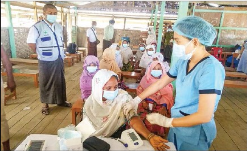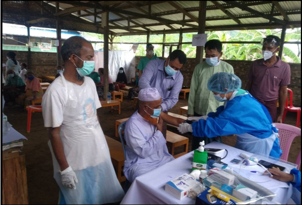 在若开邦(IDP)难民营地继续给战争难民接种疫苗