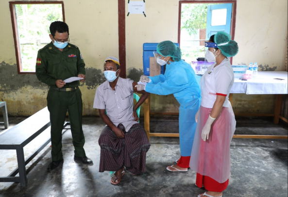 医生、卫生工作者和志愿者正在采取必要措施,继续为若开邦境内难民营45岁以上的老年人接种疫苗。8月30日,在实兑市镇德朝村新冠病毒疫苗接种共有300人接种疫苗……