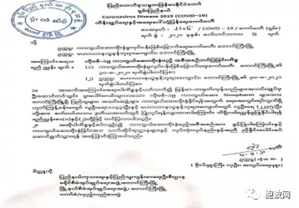 掸邦邦政府对东枝自费接种疫苗计划的批文