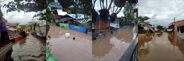 妙瓦底当地居民称:“这次水灾不仅仅是因为暴雨,还有泰国一侧的水大量涌入了低洼处。泰国一侧的村庄也面临着水灾。但由于他们所处地势较高,因此水涌入到了较低的地方。”