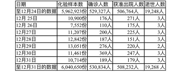 缅甸卫生部12月25日至12月31日每晚8时时所公布的疫情情况分别如下: