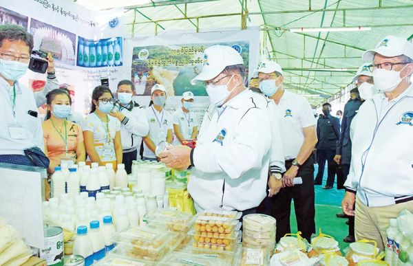 在开幕典礼上,国家总理敏昂莱大将介绍了缅甸国内目前养殖业的发展状况。在缅甸民众食用的肉类主要就是以下5种:鸡肉、猪肉、羊肉、牛肉及鱼肉,这是四种家禽家畜肉类及一种水产品肉类。根据2019年牲畜统计数字,缅甸全国饲养的牛(主要是耕牛)共有880万头,奶牛5万多头,缅语称为Nwanautd 大额牛(主要是生长在钦邦地区)5万多头,水牛160多万头,总计饲养的牛类共有1060多万头。另外,根据2021年的统计数字,全国肉猪饲养有370万头,肉鸡3,080万只,蛋鸡2,850万只,地区民族鸡3,855万只,羊及绵羊222万只,饲养的家禽家畜不可谓不多。