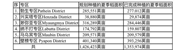 据2月20日出版的《苗瓦底》日报报导,在伊洛瓦底省农业局的近距离督导之下,在各县区农业局的通力协作之下,该省的夏季稻种植工作正在全力推进之中。今年全省规划种植的夏季稻为1,426,423英亩,将尽全力全面完成有关种植计划,直到今天已完成了规划种植计划的90%以上,这是又省农业局处获知的讯息。