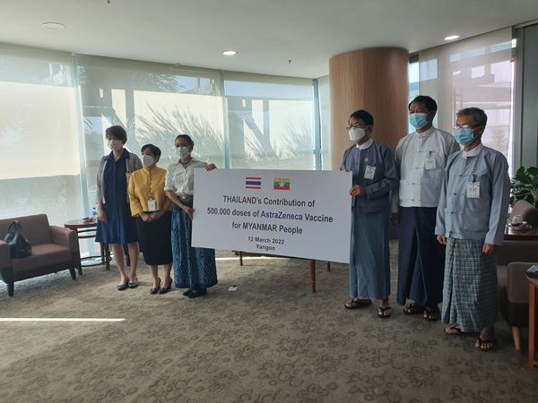 据卫生部称,泰国通过缅甸红十字会向缅甸人民捐赠了 100 万剂阿斯利康疫苗。在仰光国际机场会客厅举行了向缅甸红十字会捐赠首批50万剂疫苗和50万支注射器的交接仪式。