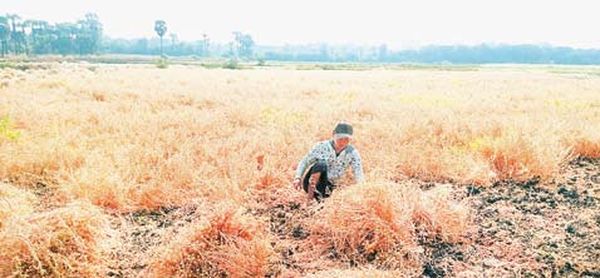 实皆省敏务(Minbu)县境内当地农夫们种植的鹰嘴豆已获得丰收,现在在各农田地头都已在进行采收、收割的工作了。