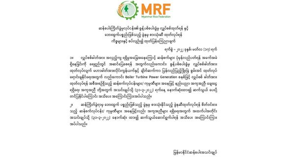 由于分时间段供电,导致米厂难以正常经营。为了长期便利,缅甸大米商协会才发布了此声明。