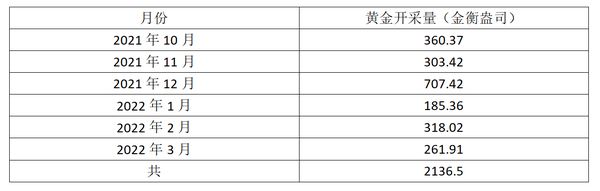 2021 年 10 月至2022年3月的六个月期间,各大省邦开采了2136.5盎司黄金,其中曼德勒省的产量为最高。此六个月期间每月开采量详情如下: