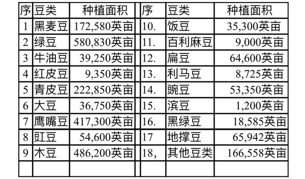 各种豆类规划种植的面积如下表: