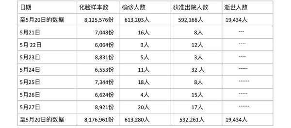缅甸卫生部2022年5月21日至5月27日每晚8时时所公布的疫情情况分别如下: