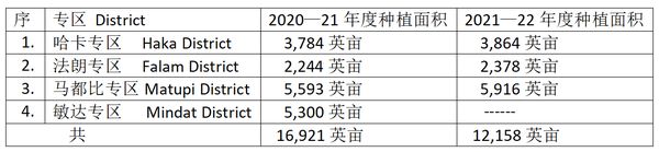 按:正如人们所说的那样,钦邦是缅甸各民族邦中,最贫困的一个邦。发展该省的特别产品,帮助人民摆脱贫困,是必须从事的一项工作但有关魔芋种植的三年发展计划,第二年的魔芋种植面积却比第一年下降了,仔细检查一下,发现敏达专区的种植面积不见数字,是遗落,还是其他原因不得而知。不管怎样,一个发展计划要获得成功,不是在纸上谈兵就能达到目的的。希望有关人士能与当地人民齐心协力合作,努力完成有关计划,达到摆脱贫困的目的。