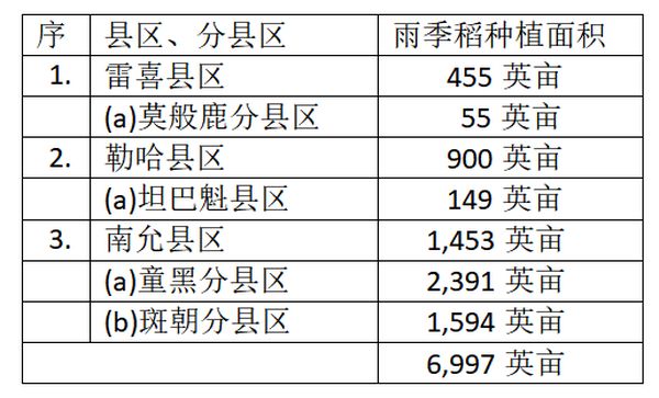 那加民族自治区内各县区完成的雨季稻种植面积如下表:
