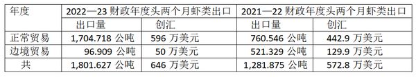 2022—23财政年度头两个月出口了1,800多吨虾类