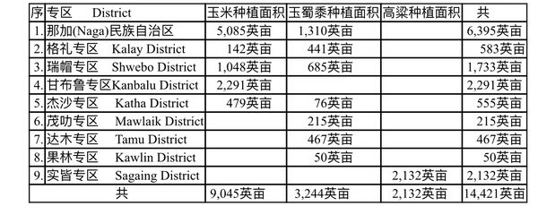 目前实皆省各专区完成的玉米及其有关作物的种植情况如下: