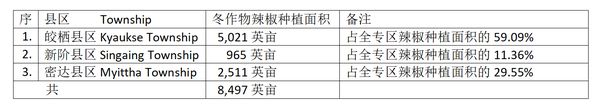 在皎栖专区内,作为冬作物种植的辣椒作物通常都在每年的公历11月份、12月份内下种种植,2022—23财政年度冬作物种植季节期间就规划下种种植辣椒5,640英亩,实际种植时这辣椒种植面积达到8,497英亩,现在已进入了采收季节,到目前已完成了这辣椒6,209英亩的采收工作。