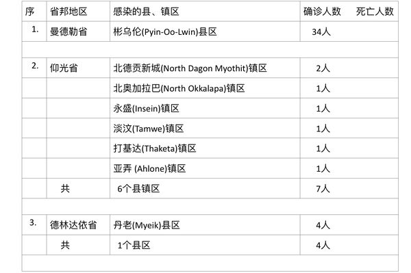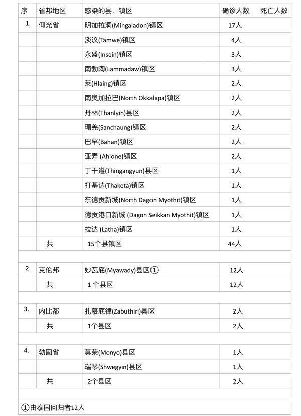 缅甸卫生部自4月24日开始重新公布各省邦地区疫情蔓延情况