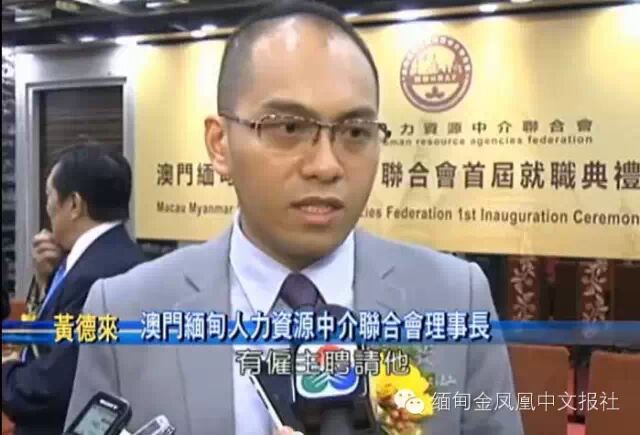【缅甸金凤凰中文报讯】据澳门缅甸人力资源中介联合会介绍,该联合会9月底举行首届理监事就职典礼,并签署合作备忘录。主席曾志龙致词表示,该会成立目的是希望通过合法输入缅甸劳工,纾缓澳门人力资源紧张,同时依法维护来澳工作的缅甸外雇及其雇主的合法权益。该会理事长黄德来表示,现时约两千缅甸人在澳工作,随着路凼新项目落成,将吸引更多缅甸人来澳,希望完善输入缅甸劳工及培训工作。