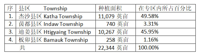 今年杰沙专区内四个县区内完成的夏季稻种植面积如下表: