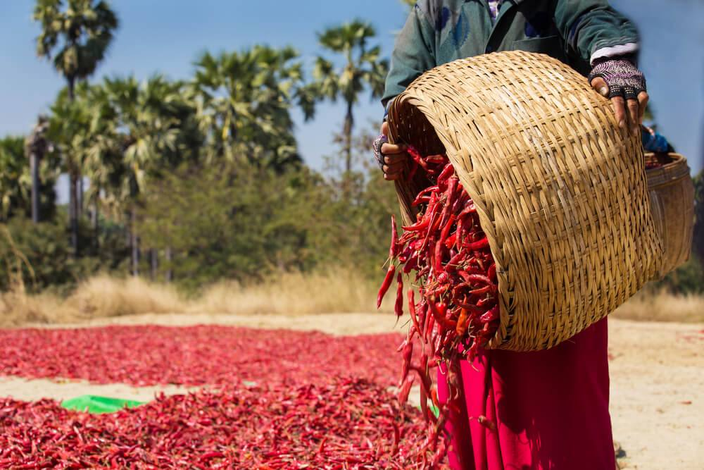 曼德勒省新阶县区今年初种植的辣椒已大量出产上市