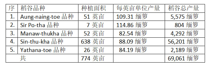 之前已有媒体报导过该额别县区在现2025财政年度夏作物种植季节期间规划种植夏季稻1,271英亩(见《缅华网》3月28日“缅甸新闻”栏目中的有关报导),现在实际只种植774英亩,只完成规划面积60.9% 的种植工作。但各品种稻谷的每英亩单位产量都超过80缅箩,有的还达到夏季稻的指标产量110缅箩左右,应该可以在一定程度上满足当地民众对粮食产品的一部分需求了。