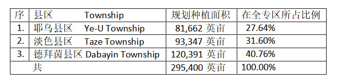 实皆省是上缅甸第一农业种植大省,耶乌县区也是该省内一重要的稻谷种植地区,在本财年度夏作物种植季节期间也曾规划种植15,000英亩夏季稻,已完成8,236英亩的种植工作(见《缅华网》7月8日“缅甸新闻”栏目中的有关报导)。现在在雨作物种植季节期间,包括耶乌县区在内,整个耶乌专区将种植雨季稻近30万英亩,各县区规划种植的雨季稻面积如下: