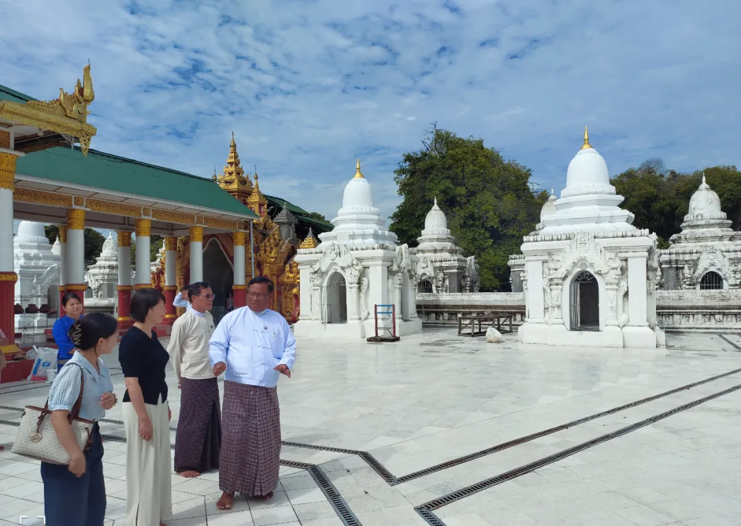 高总向缅方移交捐赠资金,实地考察佛塔受灾和修复情况并接受缅甸广播电视台采访。高总表示,中方十分关注曼德勒灾后重建特别是受损文化遗产修复情况,希通过捐赠助力缅方完成有关修缮工作,为增进中缅友谊、促进佛教文化交流注入新动力。