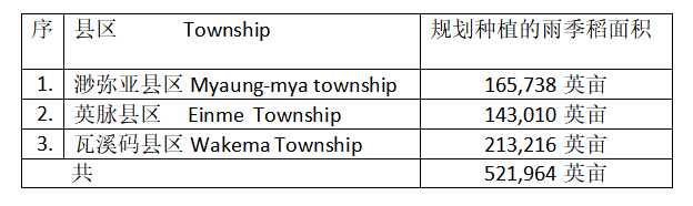 包括渺弥亚县区在内,渺弥亚专区现财年雨季规划种植的雨季稻共有52万多英亩(见《缅华网》7月11日“缅甸新闻”栏目中的有关报导),专区内的各县区规划种植的雨季稻面积如下表: