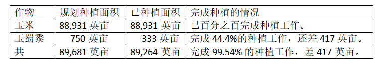 在现2025—26财政年度雨作物种植季期间,布鲁县区方面规划种植玉米玉蜀黍共89,681英亩,当地农民们现在已完成这玉米玉蜀黍89,264英亩的种植工作,占规划种植面积99.54% 的比例。