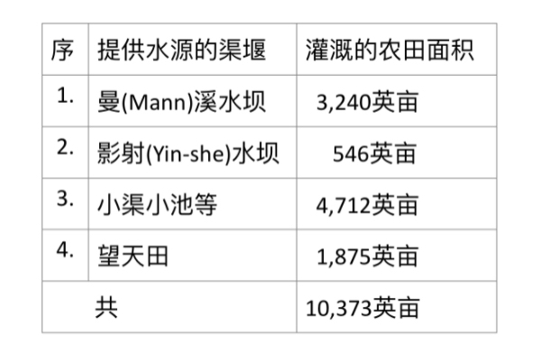 种植此雨季稻时,各渠堰所提供水源的稻田面积如下: