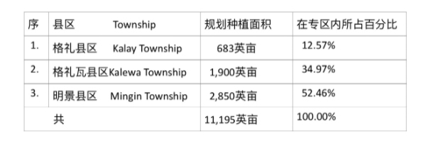 专区内的3个县区中,以明景县区规划种植的面积为最多,该县区规划种植的黑麦豆面积占了全专区的一半以上的比例,而格礼瓦县区规划种植面积占全专区规划种植面积的三分之一以上的比例。