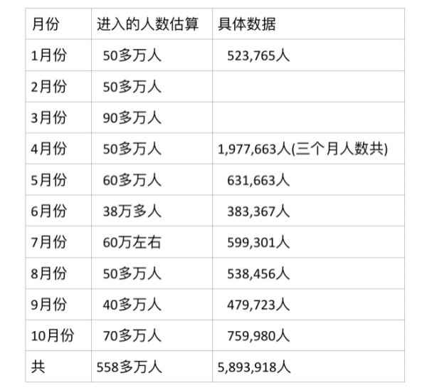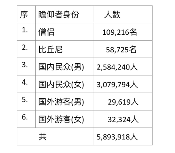 在这10个月期间,前来瞻仰朝拜此大金塔的各阶层的人数如下表: