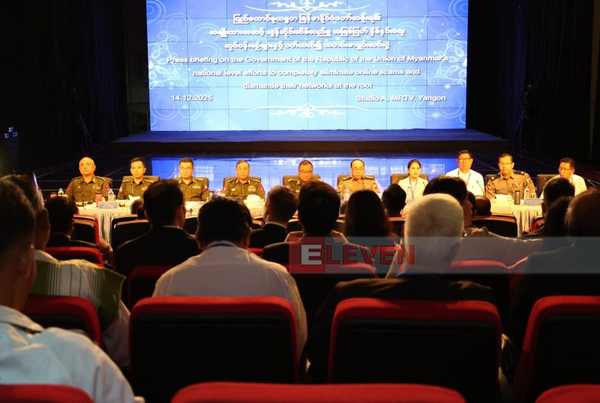 12月14日上午,在内比都缅甸广播电视台(MRTV)举行的关于国家政府根除电信诈骗行动的新闻发布会上,针对如何打击公众中盛行的各类电信诈骗、以及参与诈骗过程的缅甸公民是否已受到处理等提问,缅甸警察部队发言人觉林警准将作出了上述说明。
