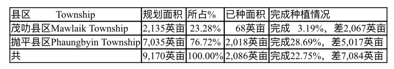 茂叻专区内各县区规划的肾豆种植面积面积及目前完成的种植面积如下表: