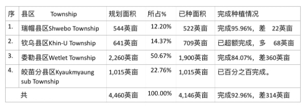 目前瑞帽专区各县区规划种植的黄油豆及已完成种植工作的面积如下表: