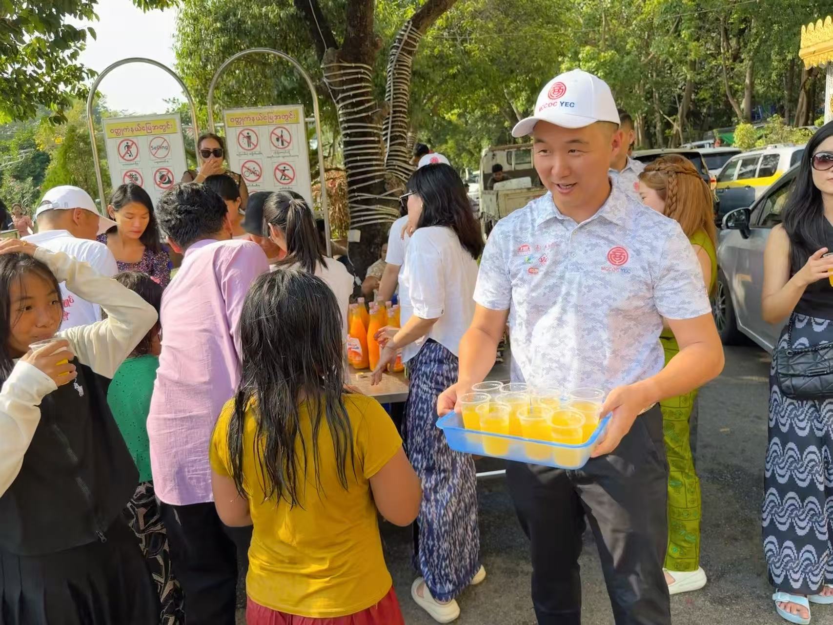 缅甸中华总商会青年委员会(MCCOC YEC)第二届泼水节布施活动圆满举行——青年担当焕发新年新气象,仰光大金塔前祈福国泰民安