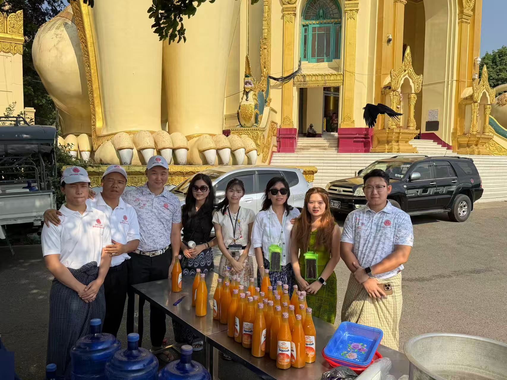活动当日,缅甸中华总商会副会长兼青年委员会主任黄少龙先生率领副主任吕美莲,委员刘永达、李国彬、郭钦慧、杨明立、莫君燕、林敏玉,青年代表陈安、陈漂、刘正志 等青年代表,向大金塔的僧侣、信众及游客布施清凉饮品两千余杯,传递善念与关怀。