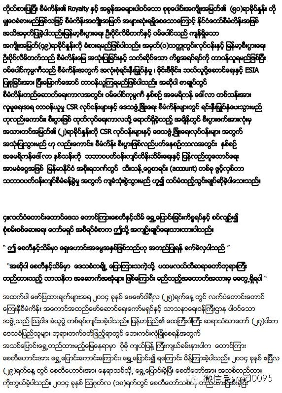 According to Production Sharing Contract, Myanmar Wanbao is responsible for the construction and operation of the project while its Myanmar partners ME1 and MEHL are responsible for the land use and resettlement for the project. The project had initially complied with Myanmar laws in terms of compensation to farmers in return for land use to the project in 2011 and the compensation plus the first subsidy has been claimed by all impacted land-lost villagers.
