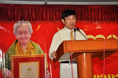 80高龄的粟秀玉老师是缅中两国人民之间的友好使者,去年曾获缅甸总统吴登盛颁发的荣誉奖状,粟秀玉老师是缅甸归侨,曾任北京外大的缅文系教授,粟秀玉老师桃李满天下。以她的弟子们带头成立的粟秀玉基金,已为缅甸107名优秀生颁奖。